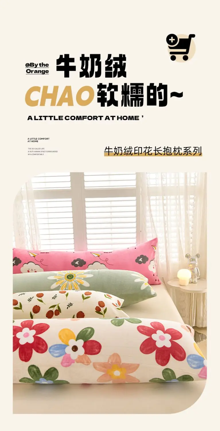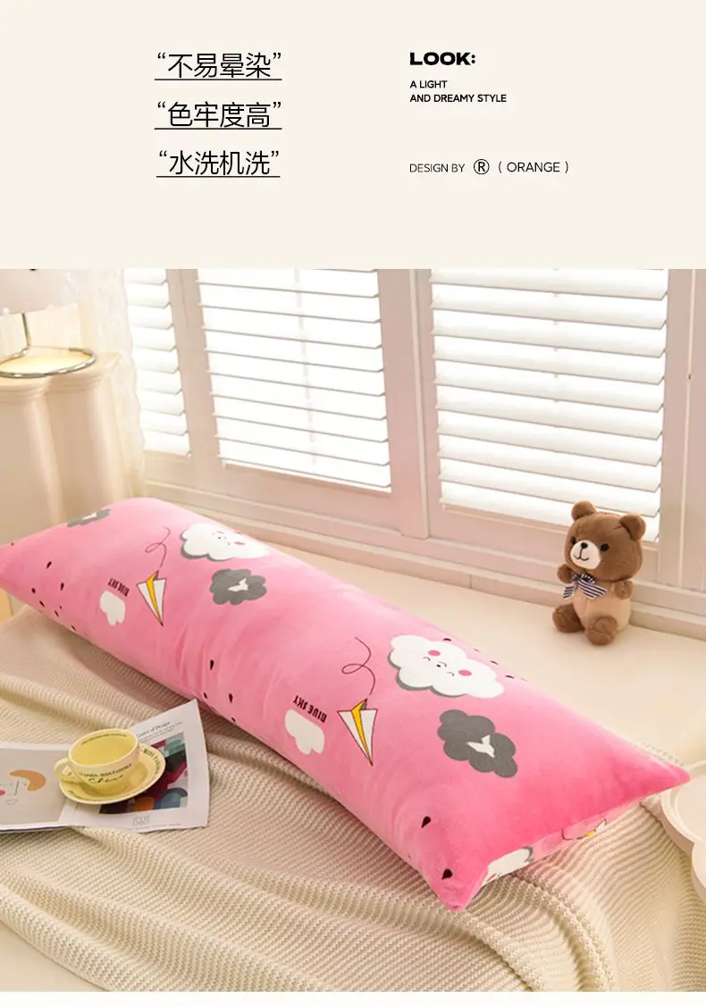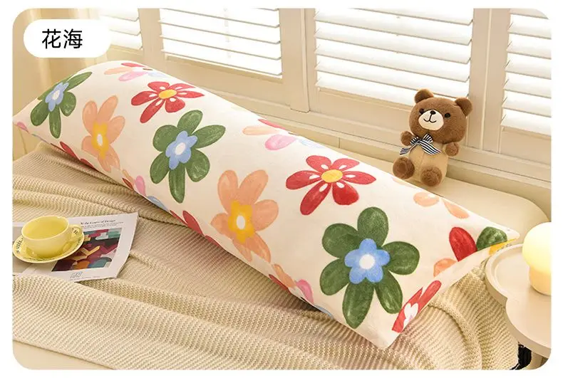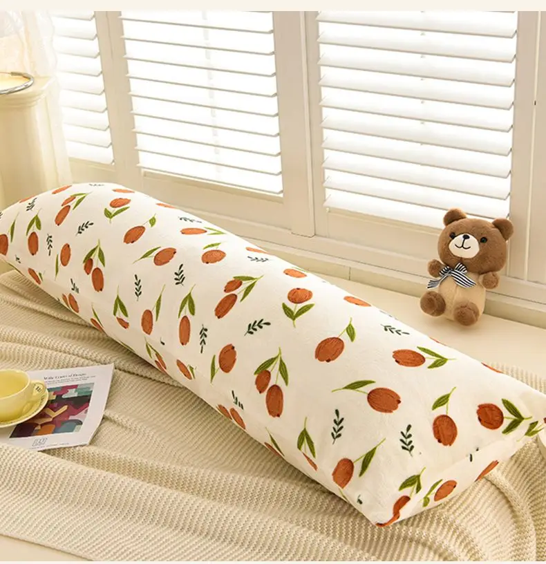 1PCS 2025 new milk fleece printed long throw pillow couple household double long pillow waist pillow