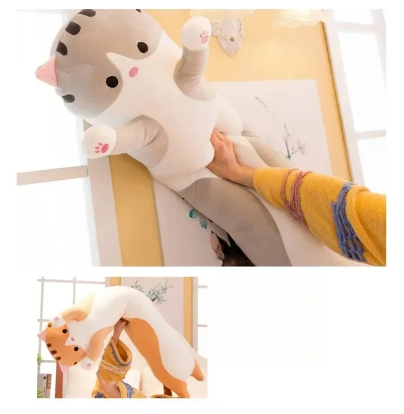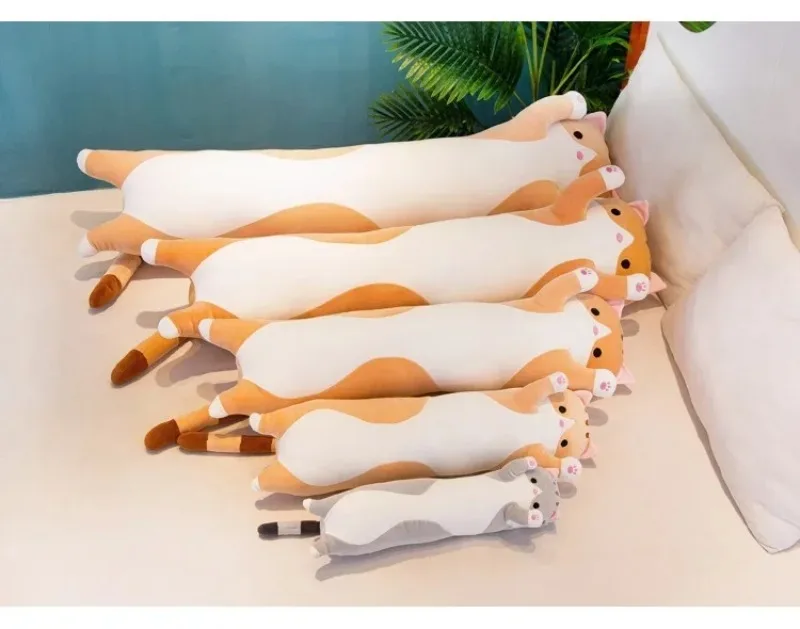 Long Cat Plush Body Pillow Creative Cute Animal Stuffed Cushion Soft Sofa Decorative Throw Pillow Large Sleeping Cushion Decor